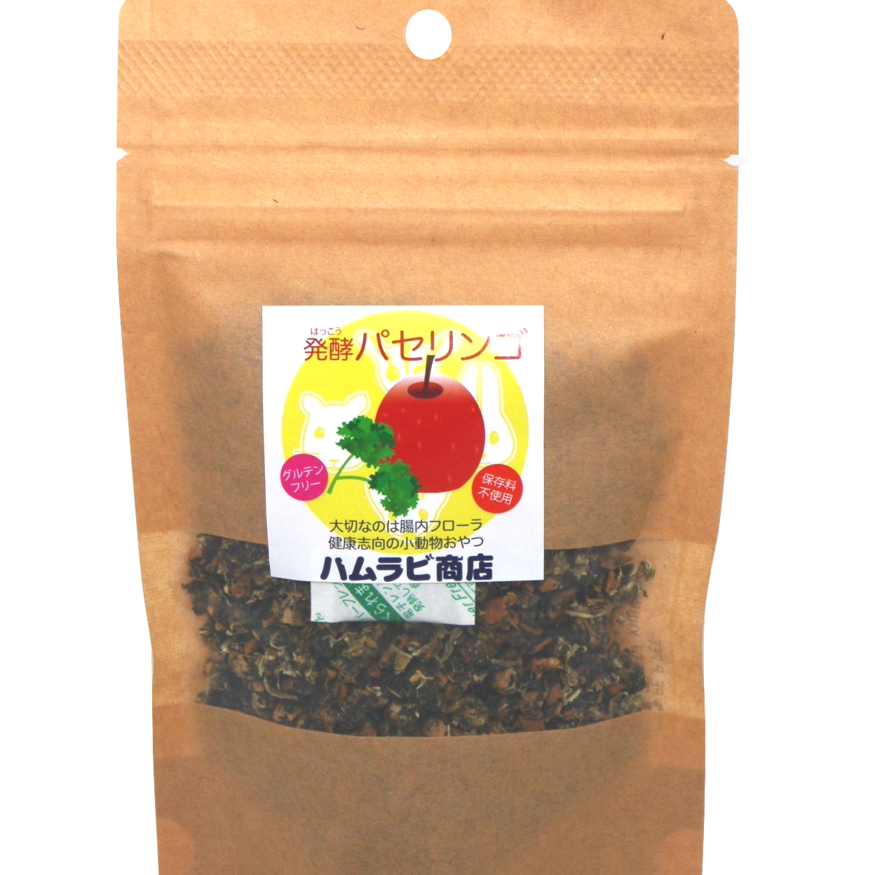 発酵したパセリと発酵したりんごをMIXして乾燥させたグルテンフリー、保存料不使用の国産の発酵おやつです。